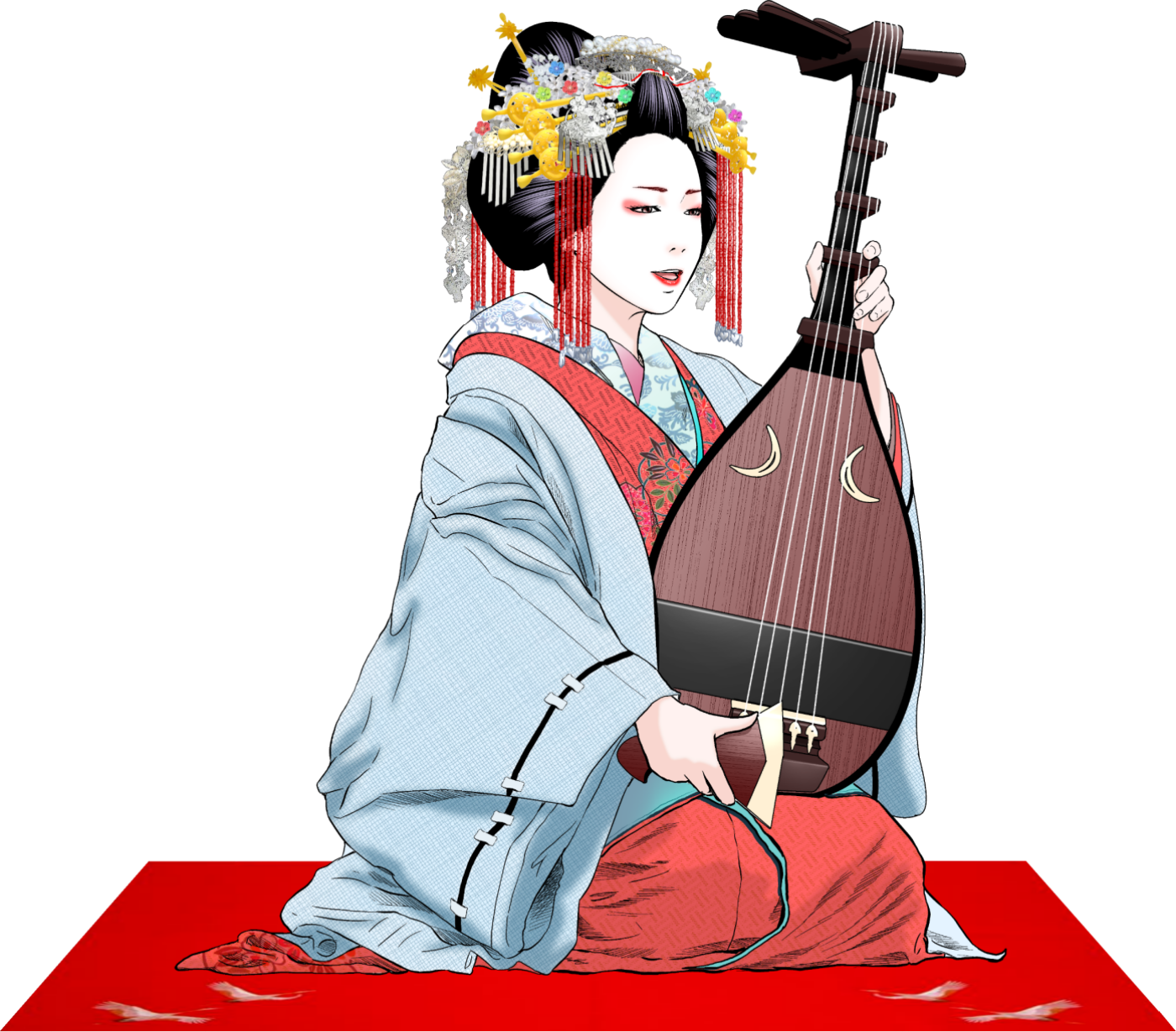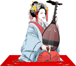琵琶を奏でる花魁のイラスト