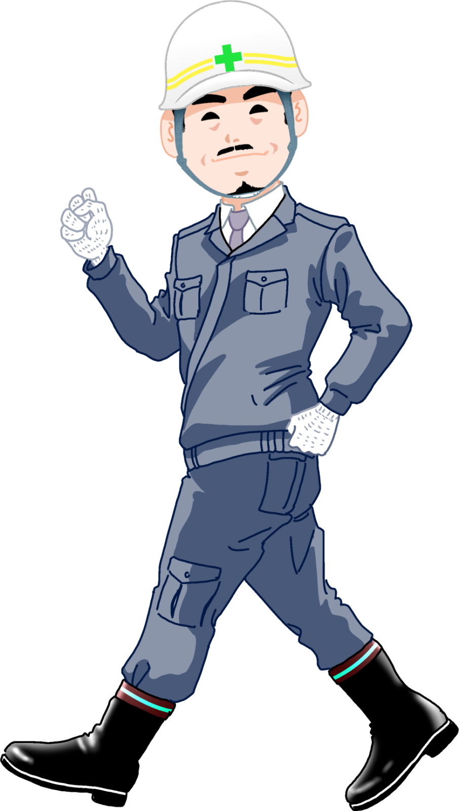 笑顔で歩く現場監督のイラスト