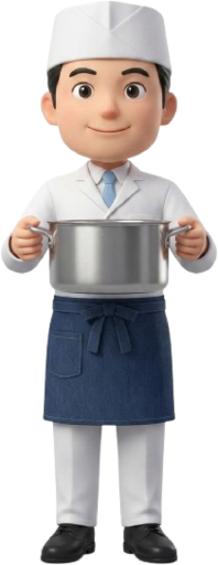 鍋を持ったコック・エプロン紺色